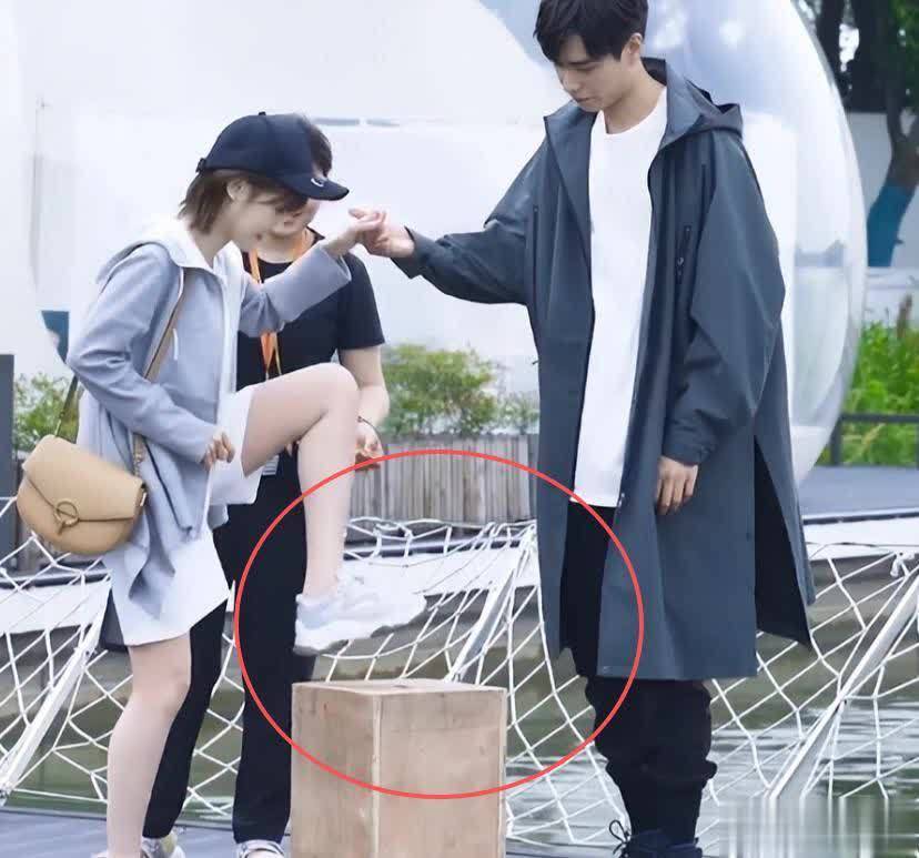 因为身高的问题,木凳通常是女演员的“必备工具”,需要踩上去跟对方进行亲密互动。