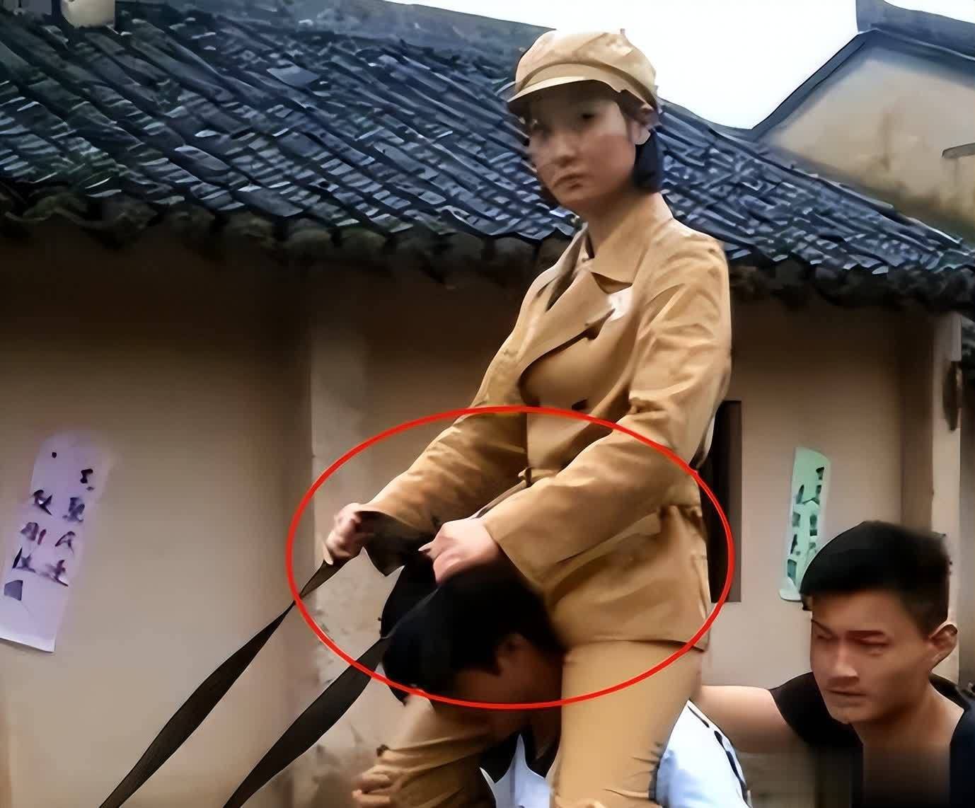 还有一个剧组采用了相同的办法,女演员直接骑在了剧组人员头上,面对镜头时脸上写满了不开心。
