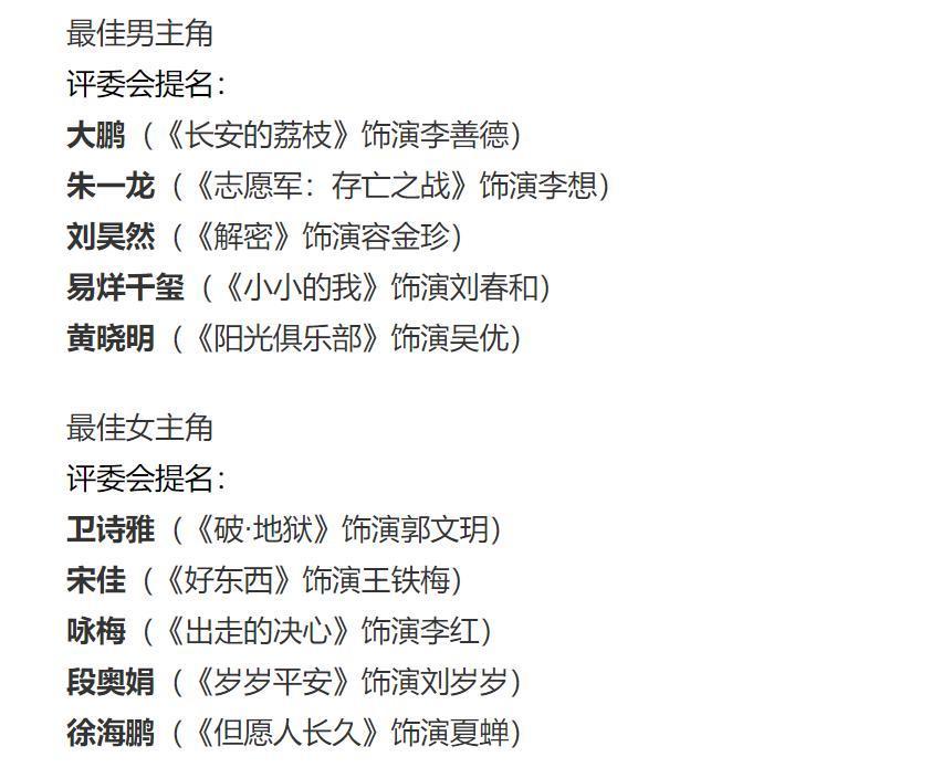 金鸡奖还没官宣提名的时候,网友们就已经开始猜测,哪些演员会入围,让大家没想到的是,本届金鸡奖提名竟爆冷,特别是看到段奥娟和徐海鹏入围,很多网友都忍不住问:她们是谁?而呼声较高的赵丽颖却没有入围,最让大家没想到的是,阵容超级豪华的《酱园弄·悬案》竟“零”提名。