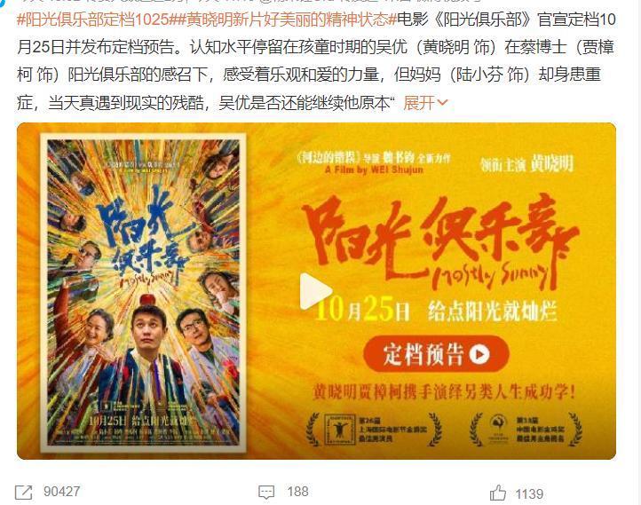 《阳光俱乐部》官宣定档,并发出预告之后,网友们对这部电影还是比较期待的,因为黄晓明的演技是在线的,而在这部电影中,黄晓明直接颠覆以往的形象。